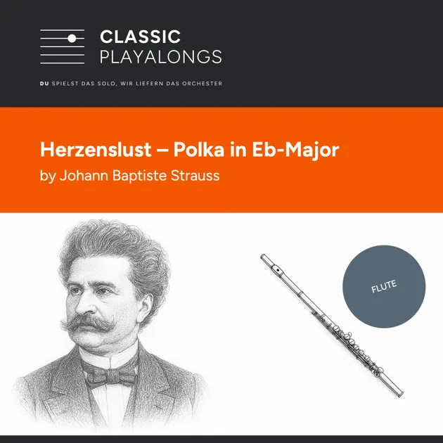 Herzenslust von Johann Baptist Strauss (Sohn) in Es-Dur für Flöte Orchester-Playalong mit Noten als Download (mp3 und pdf).