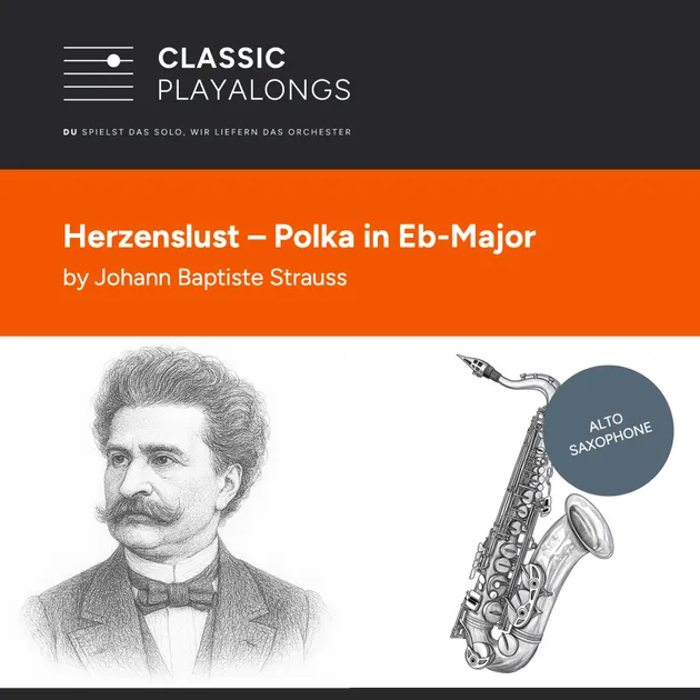 Herzenslust von Johann Baptist Strauss (Sohn) in Es-Dur für Alt-Saxophon Orchester-Playalong mit Noten als Download (mp3 und pdf).