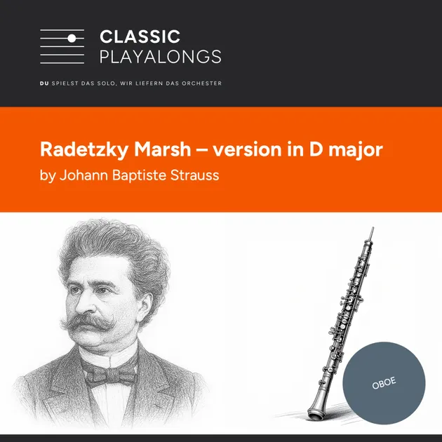 Der Radetzky-Marsch gehört zu den meistgespielten Märschen überhaupt und ist ein wahres Meisterwerk. Strauß hat den Marsch dem habsburgischen Feldmarschall Joseph Radetzky von Radetz für seinen Sieg gegen König Albert von Sardinien-Piemont bei Cusoza im ersten italienischen Unabhängigkeitskrieg am 25. Juli 1848 gewidmet. Im historischen Kontext war dieser Sieg für die Monarchie von besonderem Wert. 1848 war das Jahr zahlreicher Revolutionen in Europa und auch in weiten Teilen des Habsburgerreichs forderten Menschen Freiheit, Selbstbestimmung und Verfassungen. Kaiser Ferdinand I galt als schwach. Radetzky, bereits 82 Jahre alt war energisch, monarchietreu und diszipliniert, also genau das, was sich konservative Kräfte in dieser turbulenten Zeit wünschten. Der Radetzky Marsch greift dieses Gefühl auf und ist der musikalische Ausdruck der konservativen Antwort auf revolutionäre Unruhen. Strauß gelingt es dem Siegesmarsch neben Stolz, Ordnung und strahlender Feierlichkeit ein fast volkstümlich tänzerisches Element hinzuzufügen. Damit kann man den Radetzky-Marsch als eine Art Wendepunkt in der Geschichte der Marschmusik bezeichnen: Der Marsch fand seinen Weg aus der strengen Militärmusik in die aufstrebende Unterhaltungsmusik. Einem Gerücht zufolge hat Strauß den Radetzky Marsch aus Trotz in nur 14 Tagen geschrieben, nachdem ihm vorgeworfen wurde, er könne ja nur Walzer schreiben und keine ernste Musik. Wir wissen es nicht, aber die Idee, dass Strauß dem Marsch das Tänzerische aus diesem Grunde unterschob, ist zu schön, um sie zu verschweigen. Unser Arrangement beinhaltet betont das Tänzerische in diesem Marsch. Damit ist das Publikum noch besser zu begeistern und ein munteres Mitklatschen ist dem Solisten fast sicher. Wir finden, der Radetzky-Marsch kann mit seiner einprägsamen Melodie nahezu jedes Soloinstrument in den Vordergrund stellen. Das Stück haben wir daher für 15 Instrumente arrangiert Ist Dein Soloinstrument nicht dabei, schreib uns für eine Version an. Das Stück erzeugt eine feierlich-gute Laune und animiert ein Publikum zum Mitklatschen. Das macht es ausgesprochen vielseitig. Beim Neujahrskonzert der Wiener Philharmoniker wird der Radetzky-Marsch traditionell zum Konzertende gespielt. Spiele zu Empfängen und Jubiläen, bei brauchtümlichen Veranstaltungen wie Maifeiern, Volksfesten und Umzügen und Sportveranstaltungen. Wir haben uns streng am Original gehalten, um den hohen Wiedererkennungswert des Stücks in den Vordergrund zu stellen. Wo das Stück noch auftaucht Film: „Der brave Soldat Schwejk“ (1956): Der Marsch unterstreicht wirksam die militärische Atmosphäre in mehreren Szenen. „Oberst Redl“ (1985): Der Film beginnt mit dem Radetzky-Marsch. Damit betont der Regisseur die historische Kulisse und stimmt die Zuschauer auf die Zeit ein, in die der Film spielt „Battle Royale“ (2000): Der Radetzky-Marsch erzeugt eine paradoxe Stimmung. Fernseh-Serien: „Nummer 6“ („The Prisoner“, 1967–1968): In dieser britischen Serie spielt die Dorfblaskapelle häufig den Radetzky-Marsch, der in einen Kontrast zur utopischen Umgebung schafft. „Radetzkymarsch“ (1994): Diese deutsch-österreichisch-französische Mini-Serie basiert auf dem gleichnamigen Roman von Joseph Roth und verwendet den Marsch als musikalisches Leitmotiv. Werbung: In den 1980er Jahren nutzte Bonduelle den Radetzky-Marsch in Werbespots für „zartes Gemüse“. Mauskörner marschieren im Takt der Musik durch den Werbespot. Der „Shüttelshake“ von Marke Bärenmarke wurde ebenfalls mit dem Radetzky-Marsch beworben. Der Enkel drückt dem schlafenden Opa den Shake in die Hand, spielt den Marsch und der Opa, immer noch schlafend, schüttelt den Shake im Takt zur Musik. Gaming: „Piano Tiles 2“: Der Radetzky-Marsch ist als spielbare Melodie enthalten und wird freigeschaltet, wenn der Spieler Level 17 erreicht.