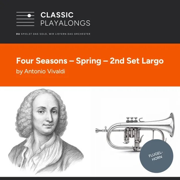 Die 4 Jahreszeiten gehören zu beliebtesten und bekanntesten Musikstücken aus dem Barrock. Sie gehören zu den ersten Programmmusik Werken. Im Frühling von Vivaldis 4 Jahreszeiten spielst Du als Solist Szenen, die in einem dazugehörigen Sonett beschrieben sind. Die Melodien des Frühlings repräsentieren Vogelgezwitscher, plätschernde Bäche, ein Gewitter und das ruhige Dasein von schlafendem Hirten und bellenden Hunden, die über eine weidende Herde wachen.