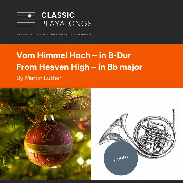 Seit fast 500 Jahren wird „Vom Himmel hoch“ zu Weihnachten gespielt. Text und Melodie kommen aus der Feder von Martin Luther. Dieser wollte kirchliche und festliche Musik zugänglich machen und aus den Kirchen in die Häuser der Menschen bringen – und das ist nachhaltig gelungen. Wir haben das Werk als classicplayalongs betont anfängertauglich gehalten und feierlich „groß“ orchestriert. Du kannst es auch im günstigen Bundle zusammen mit „Stille Nacht“ und „Alle Jahre wieder“ bestellen.