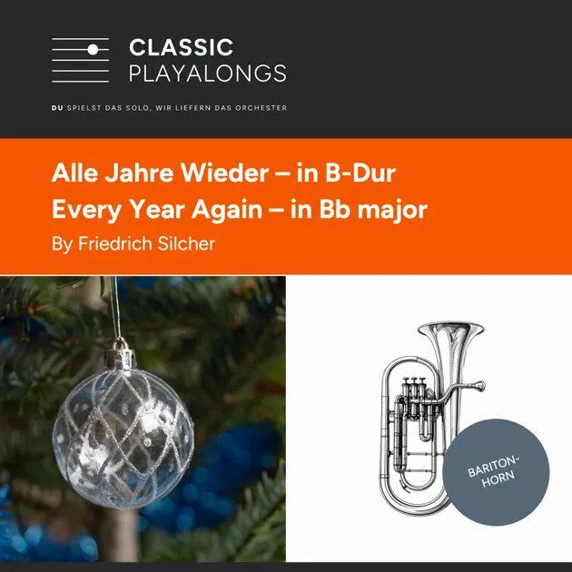 „Alle Jahre wieder“ ist ein Klassiker unter den Weihnachtsliedern im deutschsprachigen Raum und wird bereits in Kindergärten gesungen. Trotz der einfachen Melodieführung wird dieses Werk mit seiner umarmenden Wärme. Das classicplayalong von „Alle Jahre wieder“ ist ein konzertantes Arrangement, an der auch Erwachsene ihre Freude haben werden. Du kannst das Werk einzeln, oder zusammen mit „Stille Nacht und „Vom Himmel hoch, da komm ich her“ in einem günstigen Bundle bestellen.